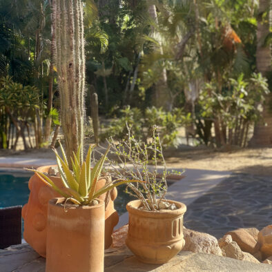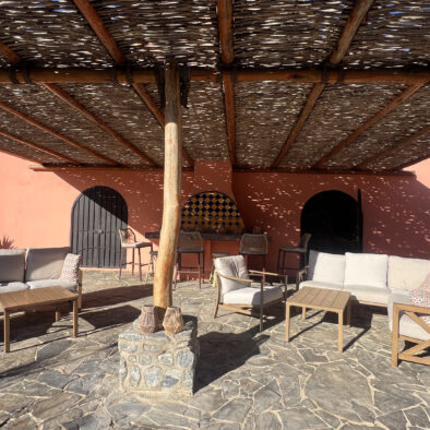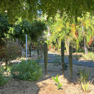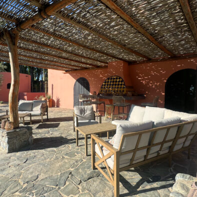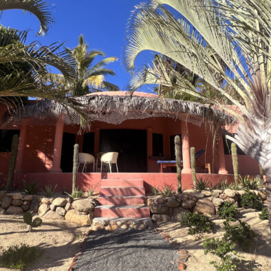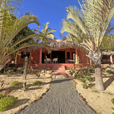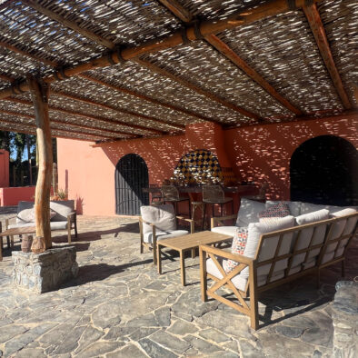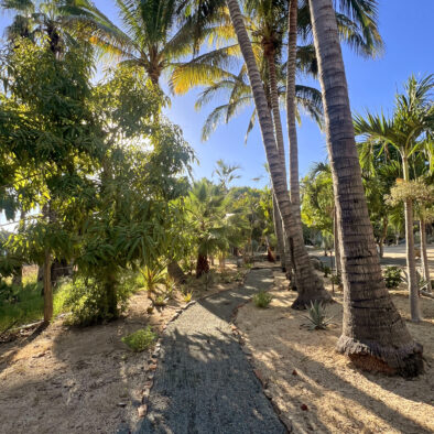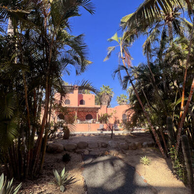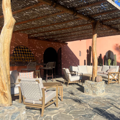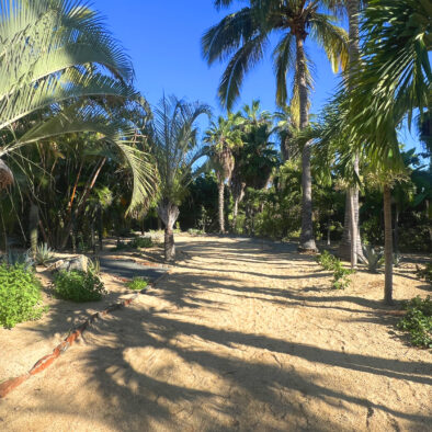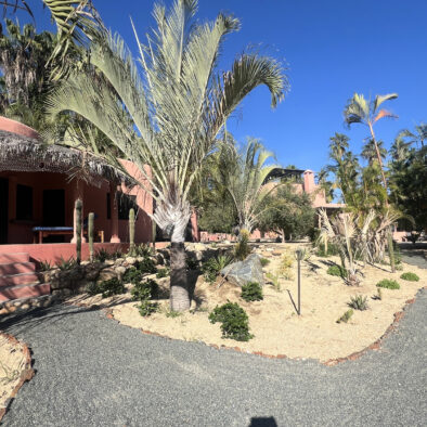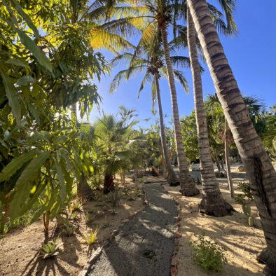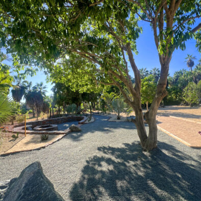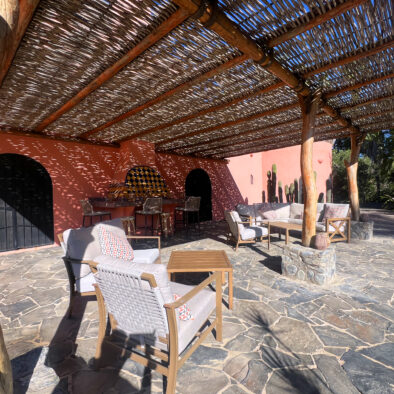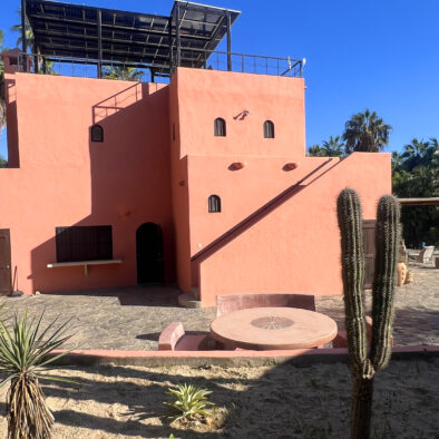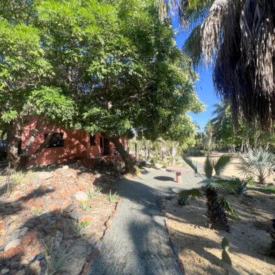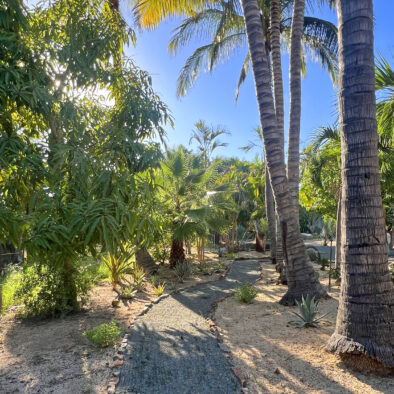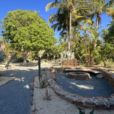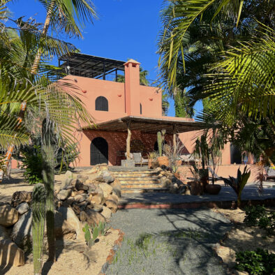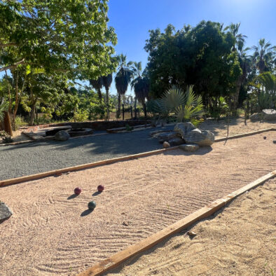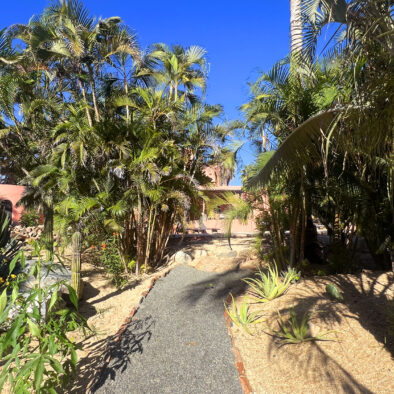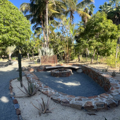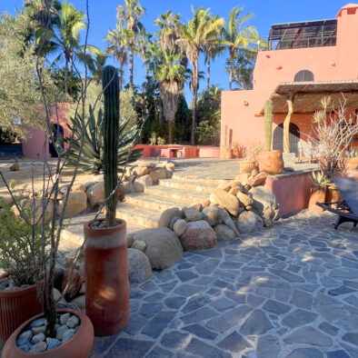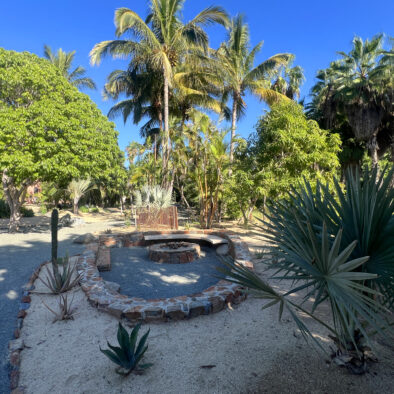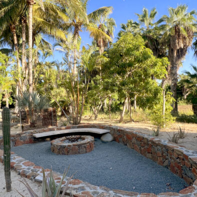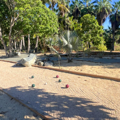 Casa Naranja sits on over an acre of private, newly refreshed grounds—complete with winding paths, a bocce ball court, new patio furniture, and a fire pit with seating for ten—creating a peaceful, secluded oasis just moments from the best of Todos Santos.